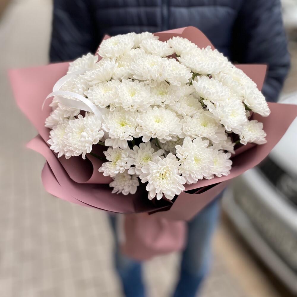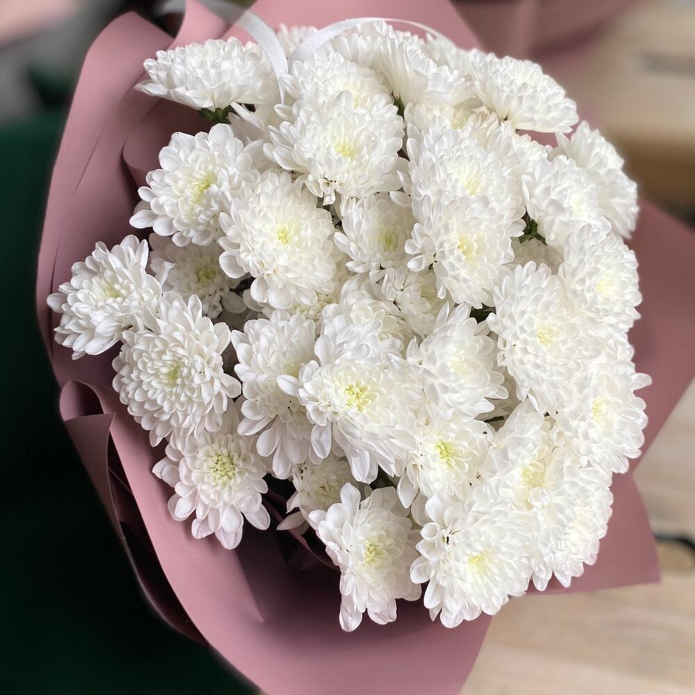 Монобукет пушистые белые хризантемы, 9 шт в Хасавюрте